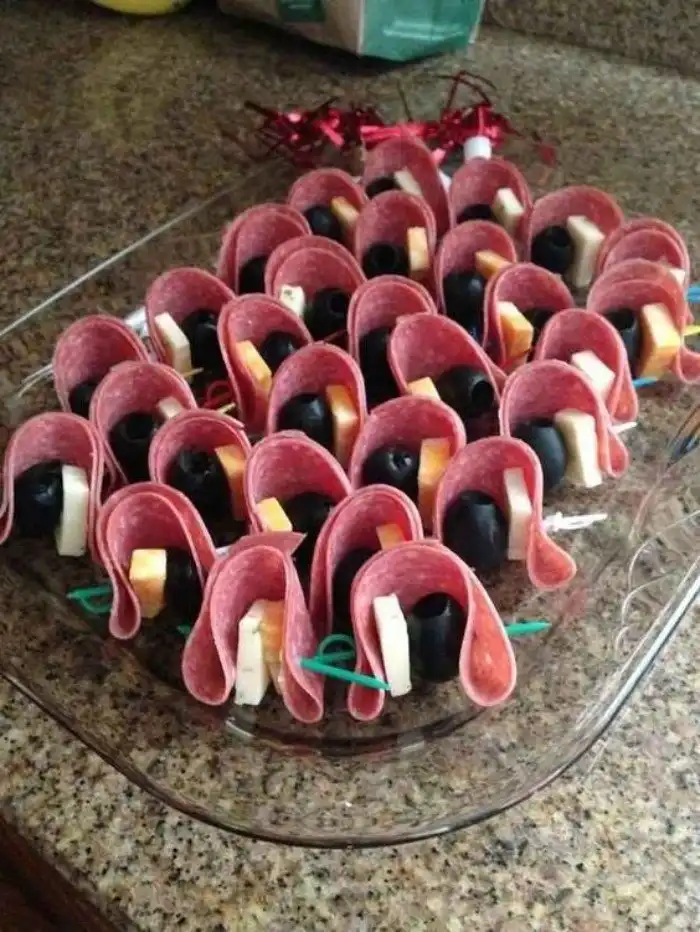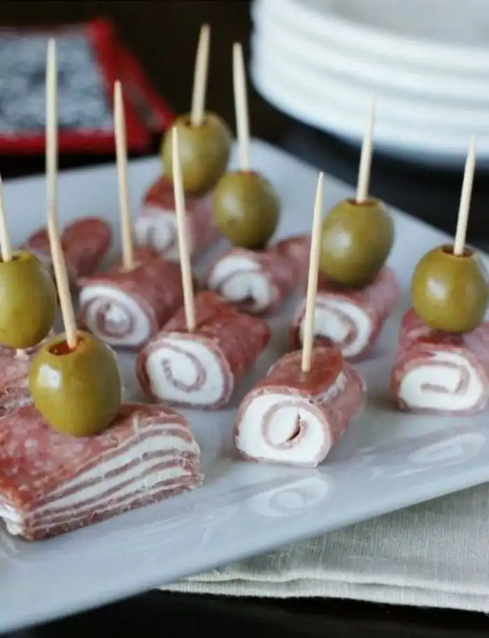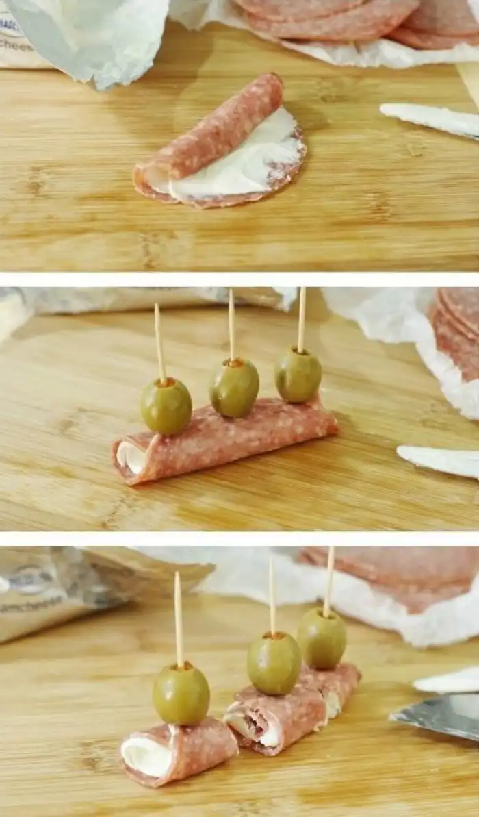 3. Салями, творожный сыр, олива и зубочистка - что может быть проще?