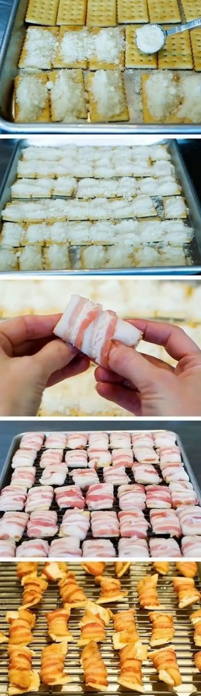 11. Крекеры с беконом, запеченные в духовке. Занимает 5 минут времени, зато какой хруст! Практически лучшие домашние чипсы