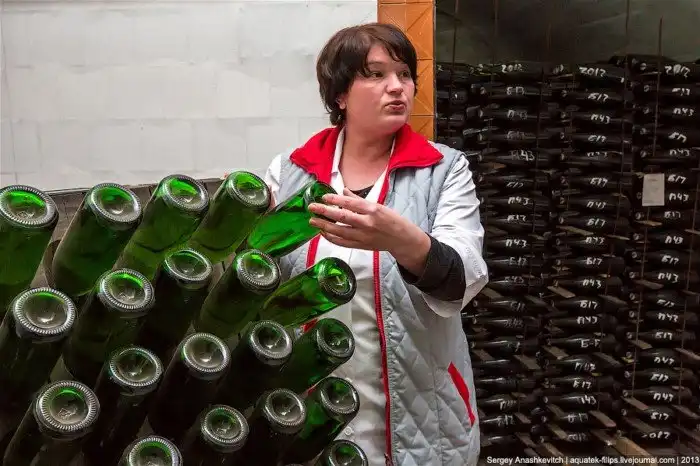Убедившись, что шампанское в бутылке прозрачно и не имеет постоянных включений, бутылки направляют на контрольную выдержку.