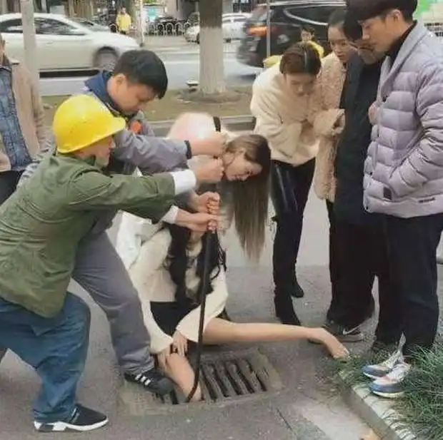 В Китае молодая девушка настолько была увлечена разговором по телефону, что совсем не смотрела себе под ноги. В итоге ее каблук угодил в решетку ливневого стока и она провалилась. Так как нога девушки застряла в узком пространстве, она не смогла выбраться без посторонней помощи. Помогли ей двое мужчин, которые с помощью лома отогнули прутья решетки и помогли девушке выбраться.