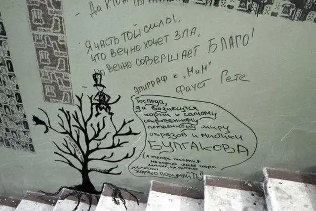 Это стены подъезда одного из домов на Большой Садовой улице в Москве, где некоторое время жил писатель Михаил Булгаков. Квартира №50 является прообразом той самой нехорошей квартиры" из романа "Мастер и Маргарита", а потому это место очень любимо поклонниками творчества Булгакова. В течение многих лет они расписывали стены цитатами героев, различными сообщениями, признаниями в любви и прочими надписями. Предлагаем взглянуть на то, как сейчас выглядит этот подъезд.