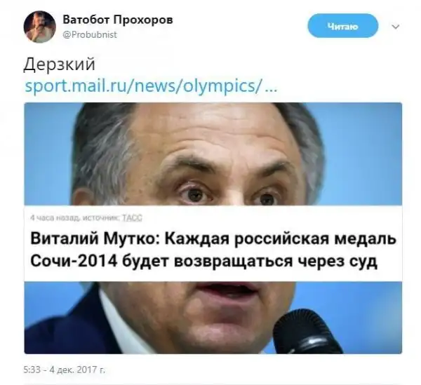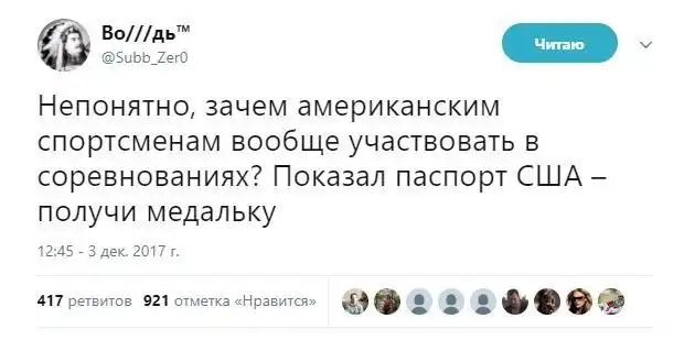 Не удивлюсь, если на олимпиаде выиграет пловец из США на моторке со справкой от ВАДА, что он не умеет плавать...