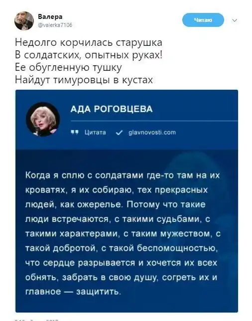 Ада Роговцева не там службу несет, ей с такими именем и замашками надо в WADA работать и тогда АТОвцы уже при жизни будут привыкать жить в Аде.