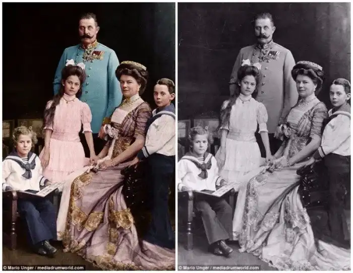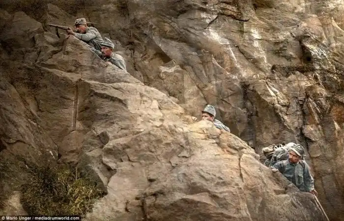 Архивные снимки тщательно раскрашены опытным мастером фотоколористики из Австрии, 53-летним Марио Унгером. На вопрос, почему он выбрал именно военную тему, художник отвечает так: "На черно-белых снимках война выглядит не столь ужасной, как на цветных".