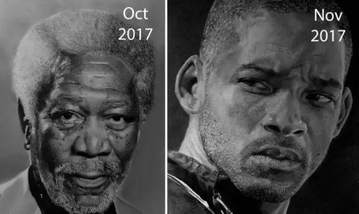 Занимаясь одним и тем же делом на протяжении долгого времени, мы можем довести свои навыки до совершенства. Наглядным тому примером служит прогресс в работе этого художника. Только взгляните на то, как за три года изменилась техника написания портретов, превратившихся из любительских рисунков в настоящие произведения искусства.