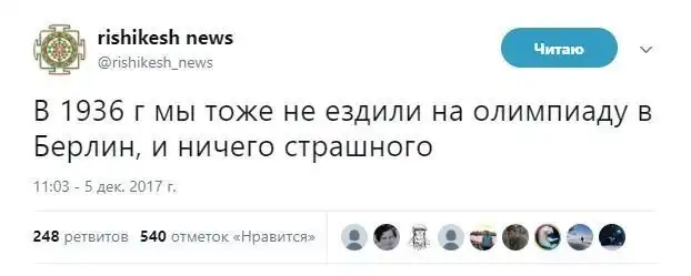 Самое смешное - янкесы, прямо сейчас обсуждают ехать на Олимпийские игры или нет, в прямом эфире, только наших журналистов туда не пускают, так что ждём новосчти BBC/