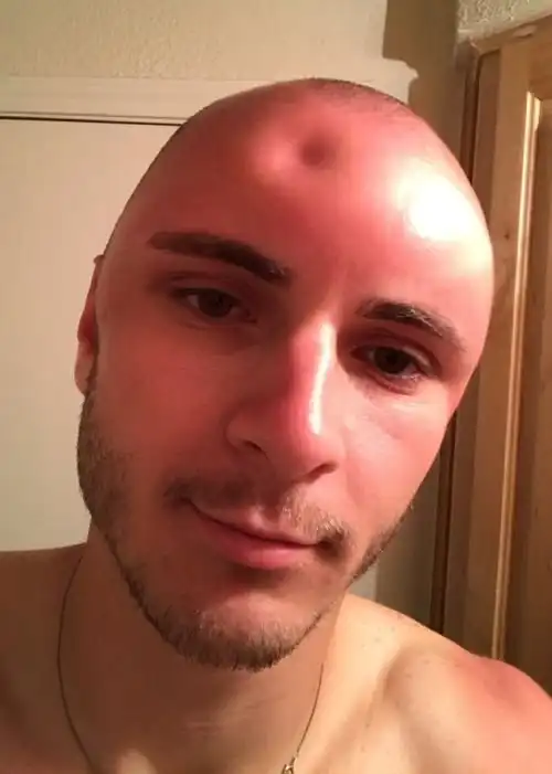 Житель штата Техас Кейд Хакэбей поделился историей своего загара с пользователями социальной сети Twitter, после чего его запись собрала более 300 000 лайков. Молодой человек побрился наголо, но обратил внимание на то, что его голова слишком белая. Тогда он решил, что ему следует загореть, при этом он не воспользовался кремом для загара. В результате голова парня покраснела и опухла, а после прикосновений к ней на ней оставались вмятины. Кейд сообщил, что это его очень испугало, но такое состояние быстро прошло. Через неделю голова молодого человека уже был в полном порядке и на ней не было никаких следов неудачного загара.