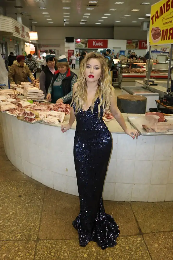 Модель в вечернем платье снялась возле мясных прилавков или "Когда ты создана для Манхэттена, чтобы с Деми Мур делиться секретами. Но почему-то живешь в Тамбове..."