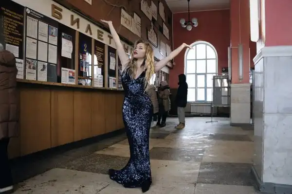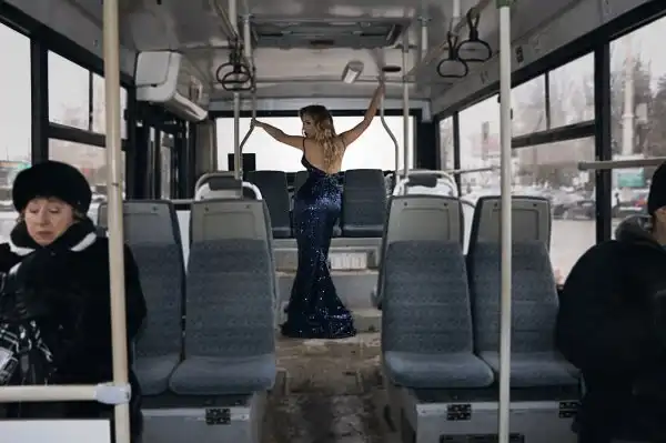 Съемка примечательна тем, что девушка в шикарном платье фотографируется не в какой-нибудь студии, а в общественных местах города Тамбова. Нарядную модель в туфлях-лодочках можно увидеть возле мясных прилавков на центральном рынке, в "Макдональдсе", в обшарпанном подъезде, в общественном транспорте.