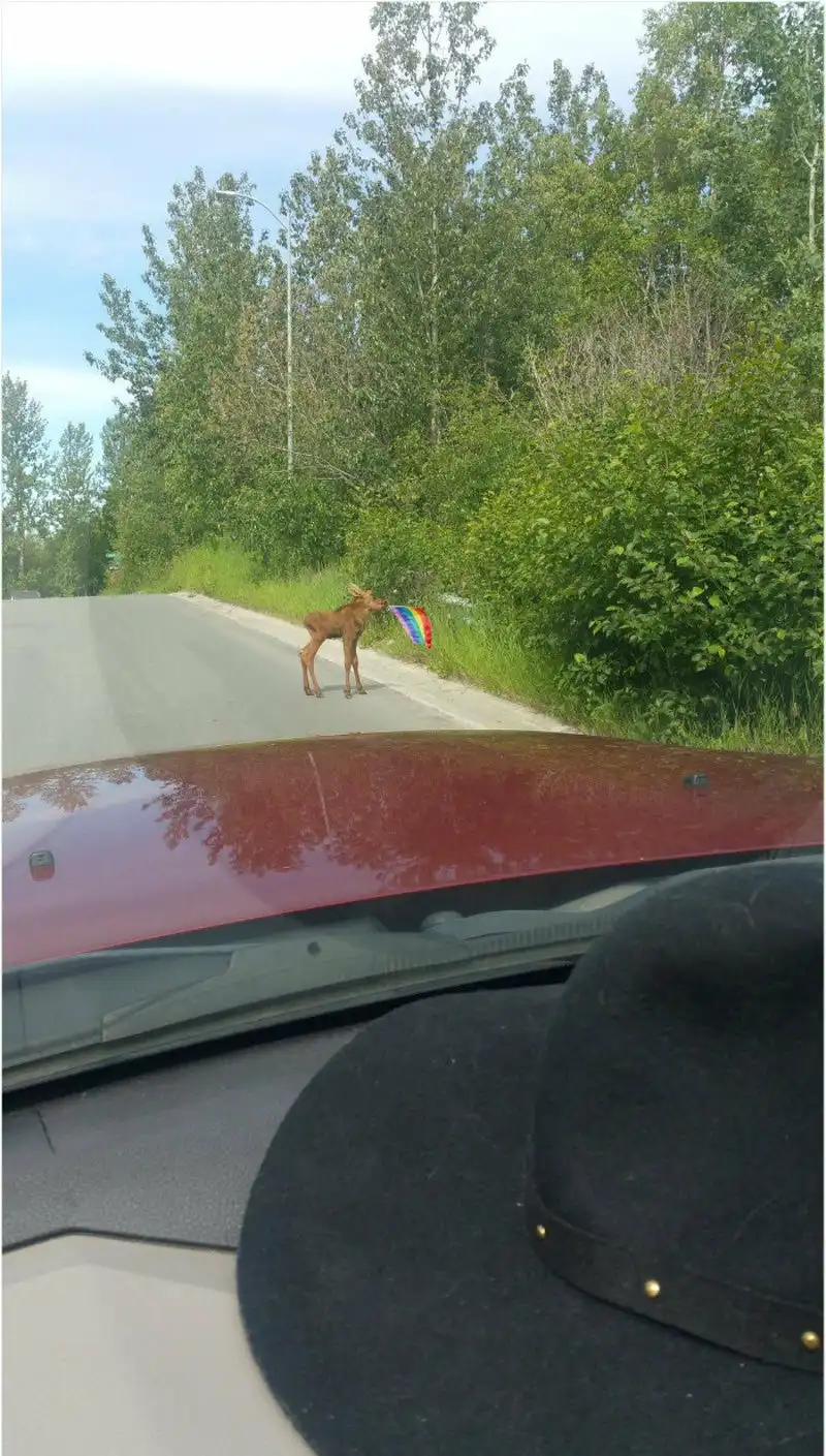 лось с радужным флагом haha страна проституток,хоккеистов и лосей педерастов