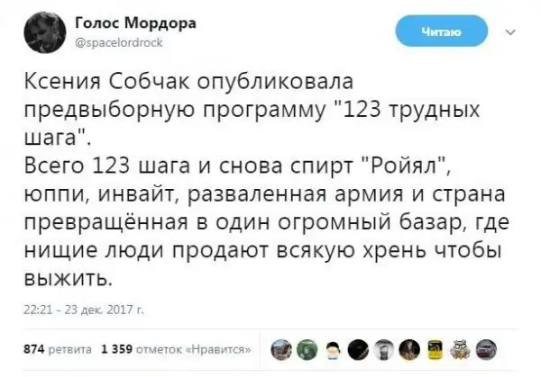ясен хрен. Ну кто поверит что собчак целых 123 шага способна выдумать. Хорошо если досчитать то до такого числа сумеет не сбившись.