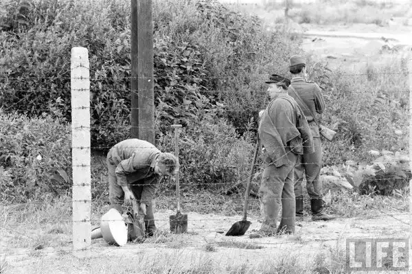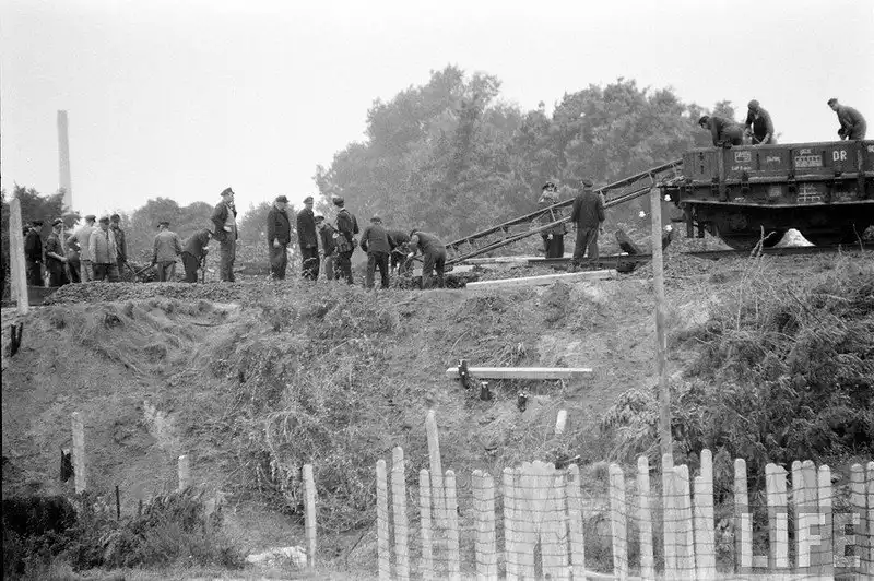 Серия фотографий, сделанных корреспондентом Хэнком Уолкером на границе между Восточным и Западным Берлином в период возведения "Берлинской стены"; август 1961-го года