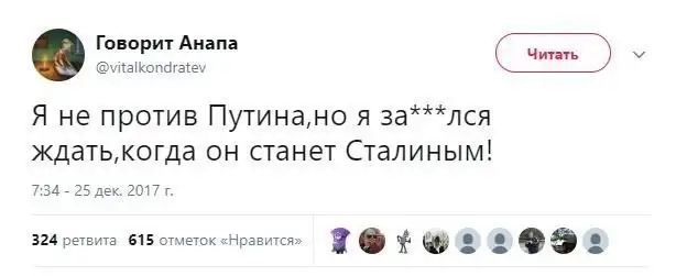 Потихоньку то надо просвещать. А то Святой мученик II. агент немецко-еврейской разведки, кровавый тиран, друг Кузи маминого, потом хбз кто не помним, Нобелевский лауреат(тоже кстати по статусу мож и покруче святого), ещё святой 90х(как жили сколько мечт было) и тадааам папапарапам опять тиран(да что ж такое и не пожили даже ).