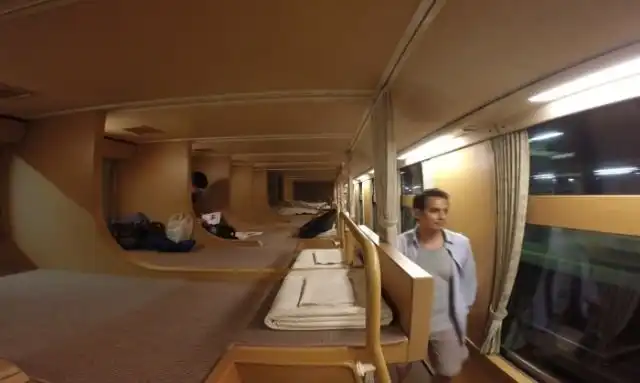 Вагоны нобиноби состоят из двух уровней, каждому пассажиру достается место длиной 220 см. Разделены эти места небольшими перегородками у окна.