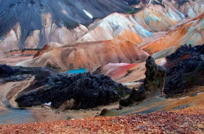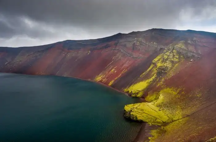 Контрастное сочетание цветов кратера Льйотиполлур («страшная лужа»). Озеро является одним из живописных природных объектов долины Ландманналойгар. © Ilan Shacham
