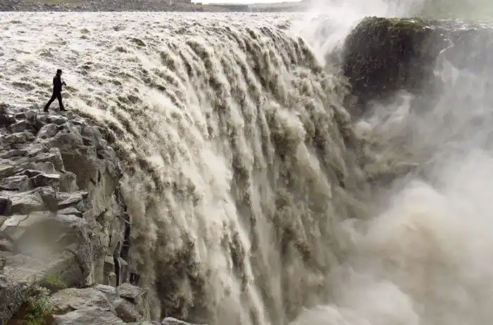 Водопад Деттифосс имеет ширину около 100 м и высоту 44 м, что всего на 9 м ниже Ниагарского водопада. Считается самым мощным водопадом Европы. © tarek touma