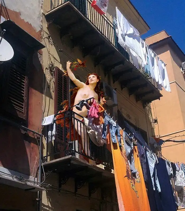 Украинский художник Алексей Кондаков в рамках своего проекта "Повседневная жизнь богов" перенес персонажей классических полотен в современный Киев. Герои эпохи Возрождения вполне комфортно чувствуют себя в метро, обедают в кафе, дремлют в общественных местах и даже продают цветы. Взгляните на прошлое в свете настоящего.