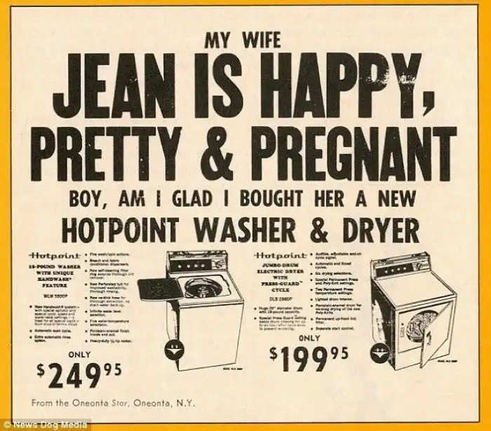 Рекламные слоганы вроде "Вот так я поймала своего мужчину" или "Успешные браки начинаются на кухне" сегодня уже невозможны, а в середине 20 века были обычным делом. Так продавались все женские товары - начиная с дамского белья и заканчивая кремом для лица или каким-нибудь кухонным прибором.