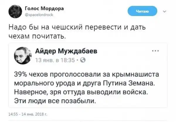 макароныч, если ты плюнешь в лицо народу то народ утрется. а если народ плюнет в тебя ты потонешь. совсем походу в старческий маразм впал козел старый.