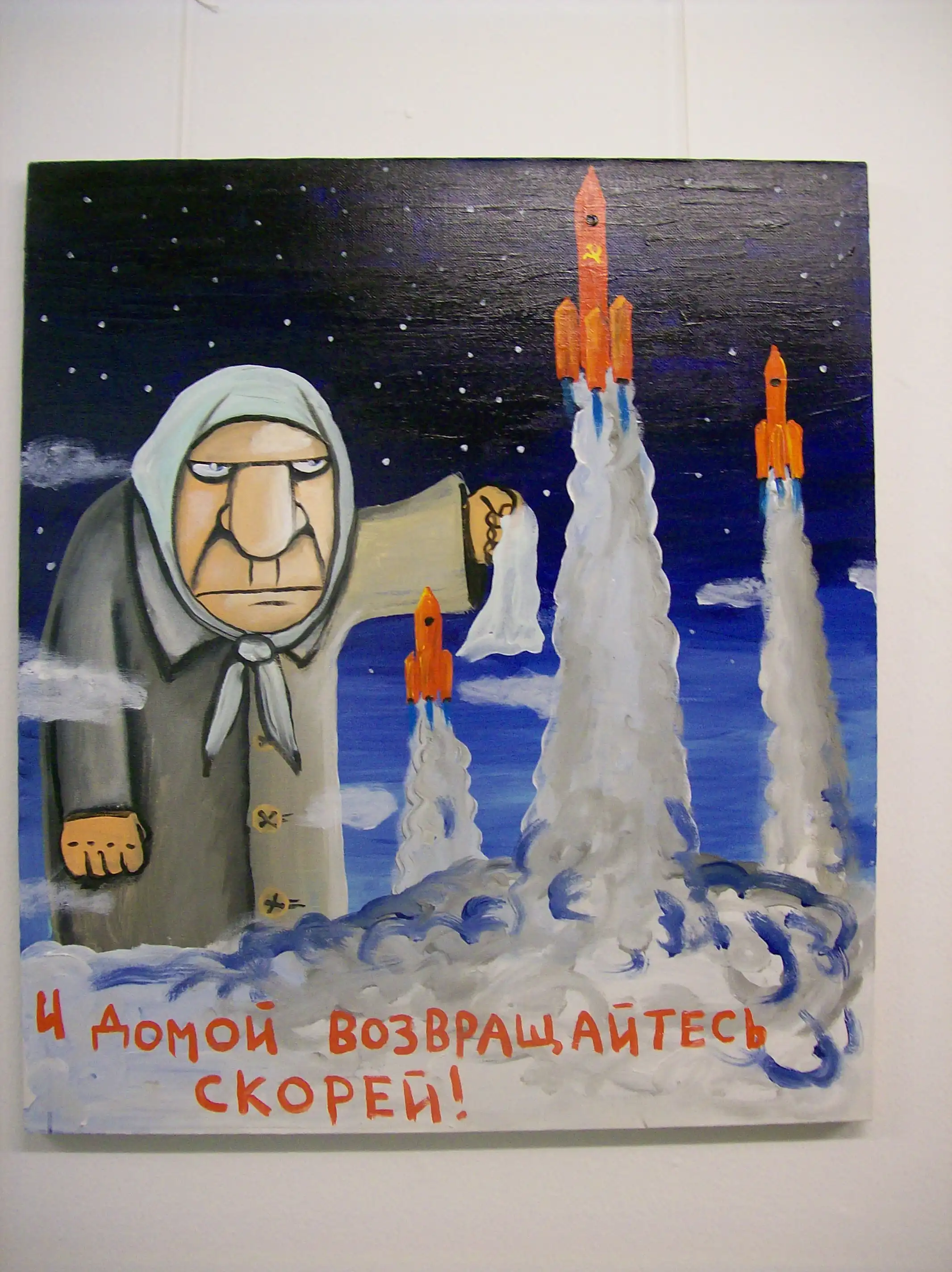 В Москве в Центральном Доме Художника проходит выставка "Великая и прекрасная Россия" замечательного художника Васи Ложкина, работающего в стиле "анти-лубок".