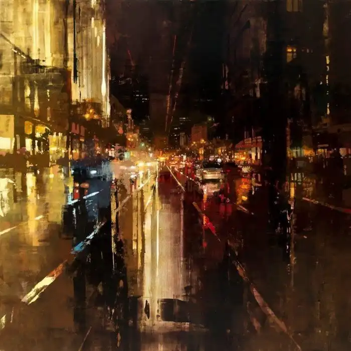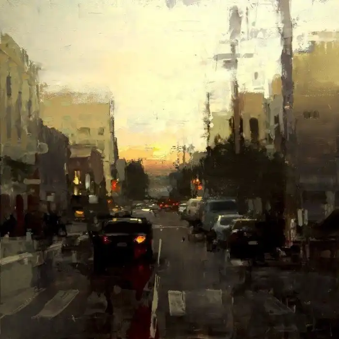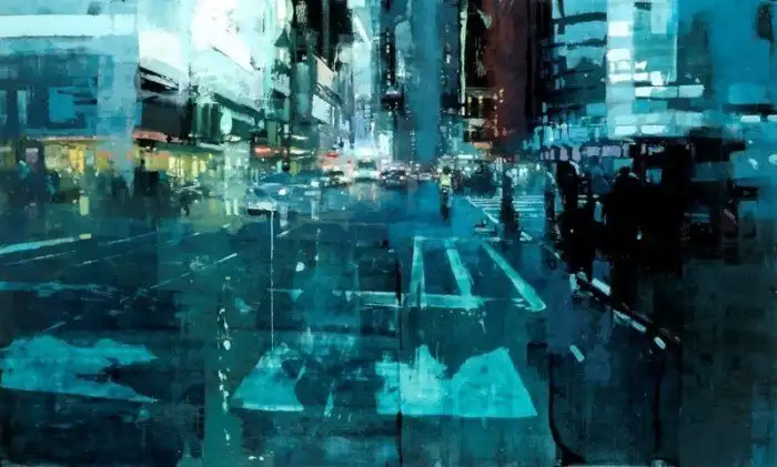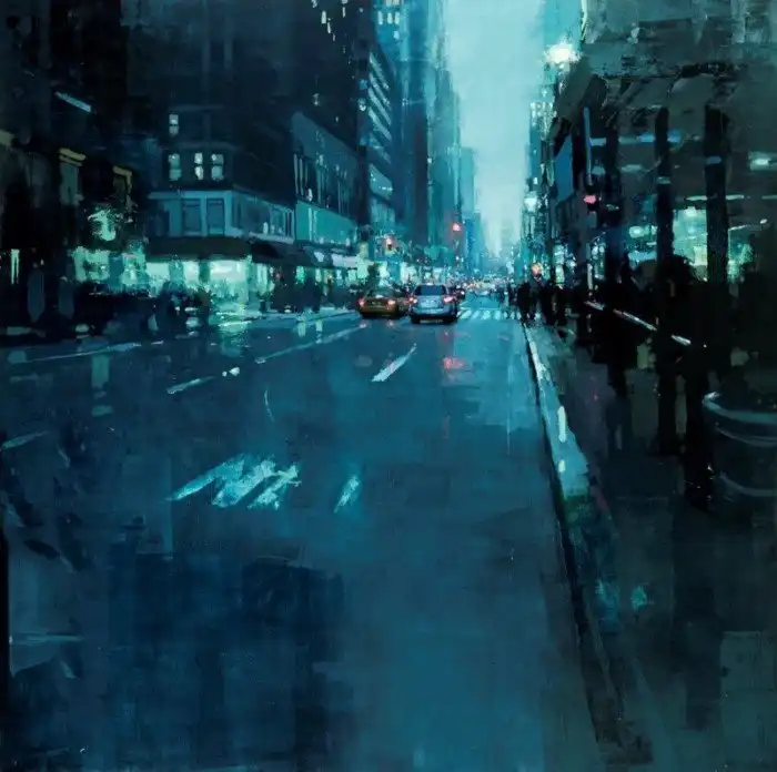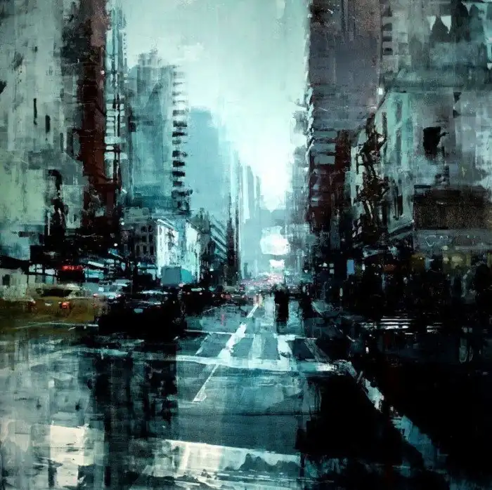 Американский художник Джереми Манн создаёт очень интересные и весьма своеобразные картины городов. Благодаря особой технике и характерному стилю, у него получается передать динамику, краски, толчею и суматоху большого города.