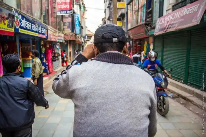 Там меня и нагнал очередной извозчик, который никак не хотел отставать. Когда я попросил «оставить меня одного», он понял, что ничего от меня не добьётся и переключился на стандартный непальский скрипт продолжения общения: «вераюфром? — руссиа из вери стронг нау! — фёст тайм ин непаль? — вельком ту непаль!». Я никуда не спешил, и решил поболтать с ним. После обмена любезностями, Сурья — так звали моего нового знакомого, достал потрёпанный мобильный телефон и начал рассказывать о своей семье, показывая фотографии. Он рассказал, что его дом находится недалеко от Луклы, в горах. Там живут его 15-летний сын и еще какие-то дети, родственники. Сам он с женой и маленьким ребёнком вынужден временно жить в Катманду, снимая комнату.