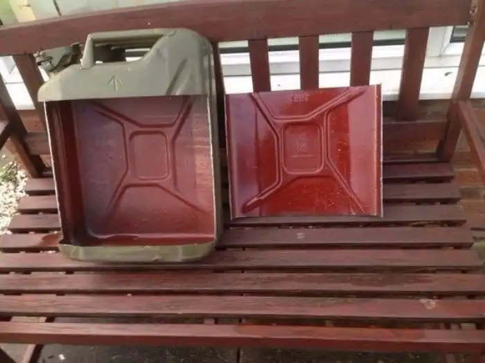 Вам потребуется только ненужная канистра. Тщательно ее вымойте, чтобы избавиться от посторонних запахов. Дальше все зависит от вашей фантазии. Пошаговая фото-инструкция поможет вам в два счета сделать персональный мини-бар своими руками.