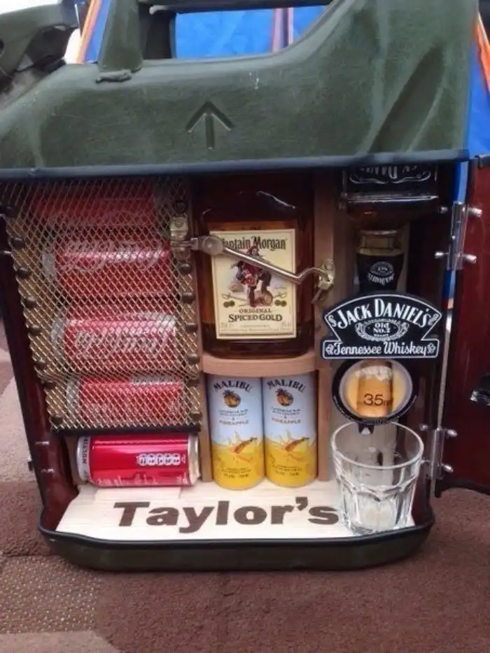 В этой щекотливой ситуации вам поможет дорожный мини-бар из канистры. Универсальная вещь, которая не только спрячет алкоголь от посторонних глаз, но и позволит грамотно разместить все необходимое. Это удобно, надежно и очень даже оригинально!