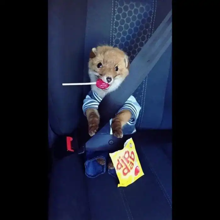 "Конечно, не обходится без удивленных взглядов в нашу сторону, когда мы вместе едем в транспорте или совершаем покупки в магазине. Мне приходится рассказывать каждому грустную историю о маленьком лисенке, которого сбила машина, но ему был дан второй шанс.
