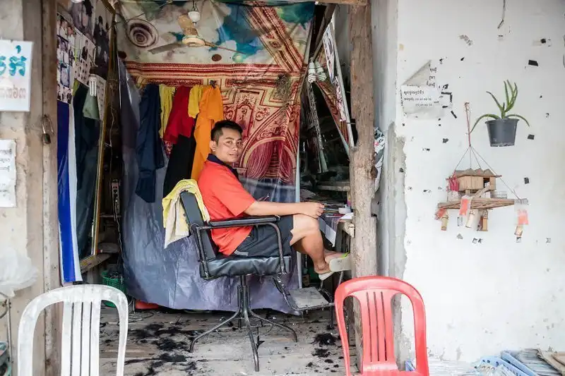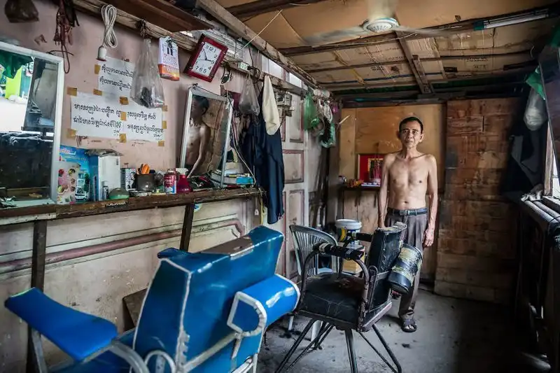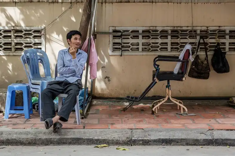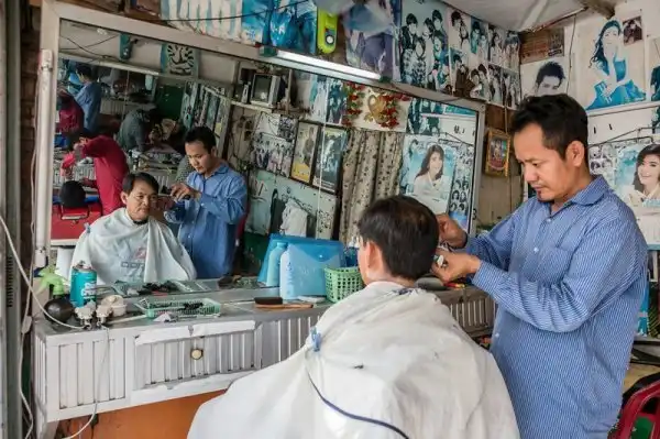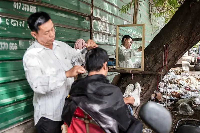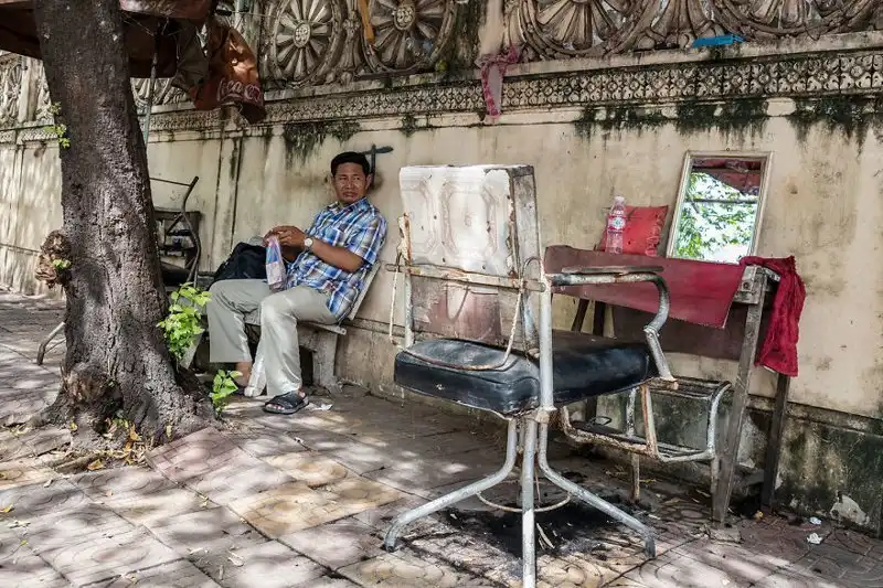 Камбоджа - бедная страна, и многие ее жители отказывают себе в самом необходимом. Но только не в хорошей стрижке! В столице страны, Пномпене, и во многих других городах, парикмахерские встречаются на каждом углу, иногда - просто на улице. Мюнхенский фотограф Роберт Гетцфрид, будучи в Пномпене, создал фотосерию, посвященную местным парикмахерам и их рабочим местам.