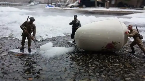 Взрослые мальчики тоже любят играть в солдатиков. И некоторым из них это удается даже лучше, чем детям. Например, канадский художник, известный в сети как @littlearmymen, создает фигурки военных времен Второй мировой войны и придумывает для них сценки в реальной жизни. Его армия уже привыкла к самым невероятным приключениям!