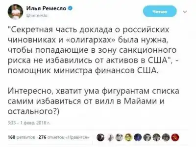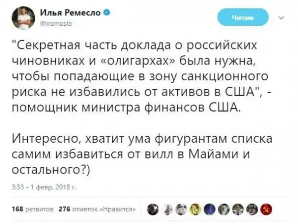 Хотелось бы напомнить этим олигархам. Вам же предлагали вернуть капиталы в Российскую экономику. Теперь не жалуйтесь.