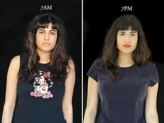 Но, пожалуй, самым ярким стал четвертый год проекта, когда она сфотографировала своих моделей в семь часов утра, когда они только что проснулись, а затем в семь часов вечера. В некоторых случаях они проводили ночь в гостях у Барбары, а к другим она заходила, чтобы разбудить их.