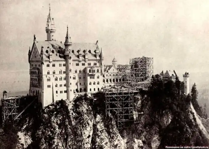 Замок Нойшванштайн стоит на месте двух крепостей. Король Людвиг II приказал на этом месте путём взрыва скалы опустить плато приблизительно на 8 метров и создать тем самым место для постройки «сказочного дворца». 5 сентября 1869 года был заложен первый камень для строительства огромного замка.