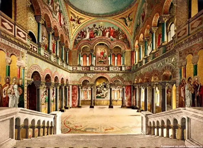 Несмотря на то, что тронный зал не был завершен при строительстве, он является, без сомнения, самым впечатляющим. Почтовая открытка, конец XIX века:
