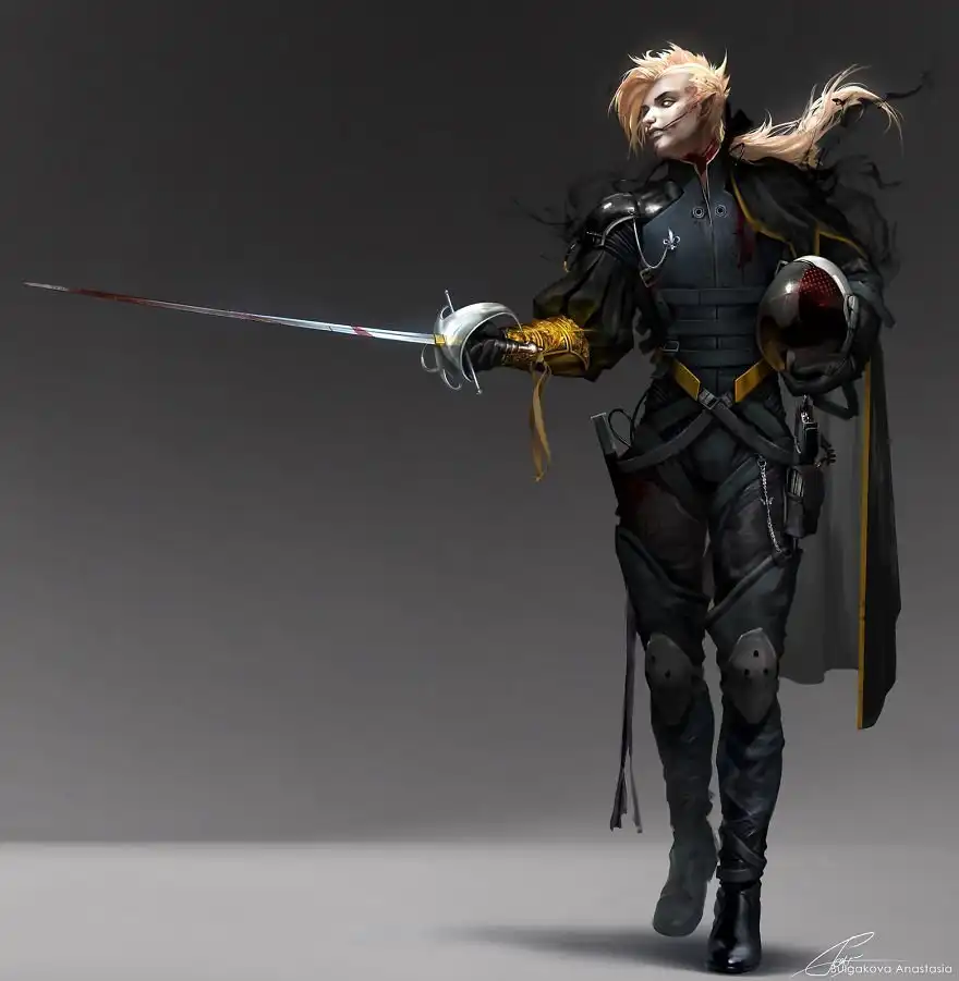 Немного наивна и идеалистична, но внутри довольно порочна. Очень привлекательна и харизматична, легко привлекает других на свою сторону. Преследует свои цели без оглядки на мораль или последствия. Ее главная цель - выжить, и сделать это с максимальным комфортом. Она носит кожаные доспехи, так как предпочитает снайперские сражения на очень дальних дистанциях. Кибернетические руки и ноги дают ей исключительную скорость в бою. Она убийца. И ей нравится огонь. Особенно его запах по утрам. Запах победы.