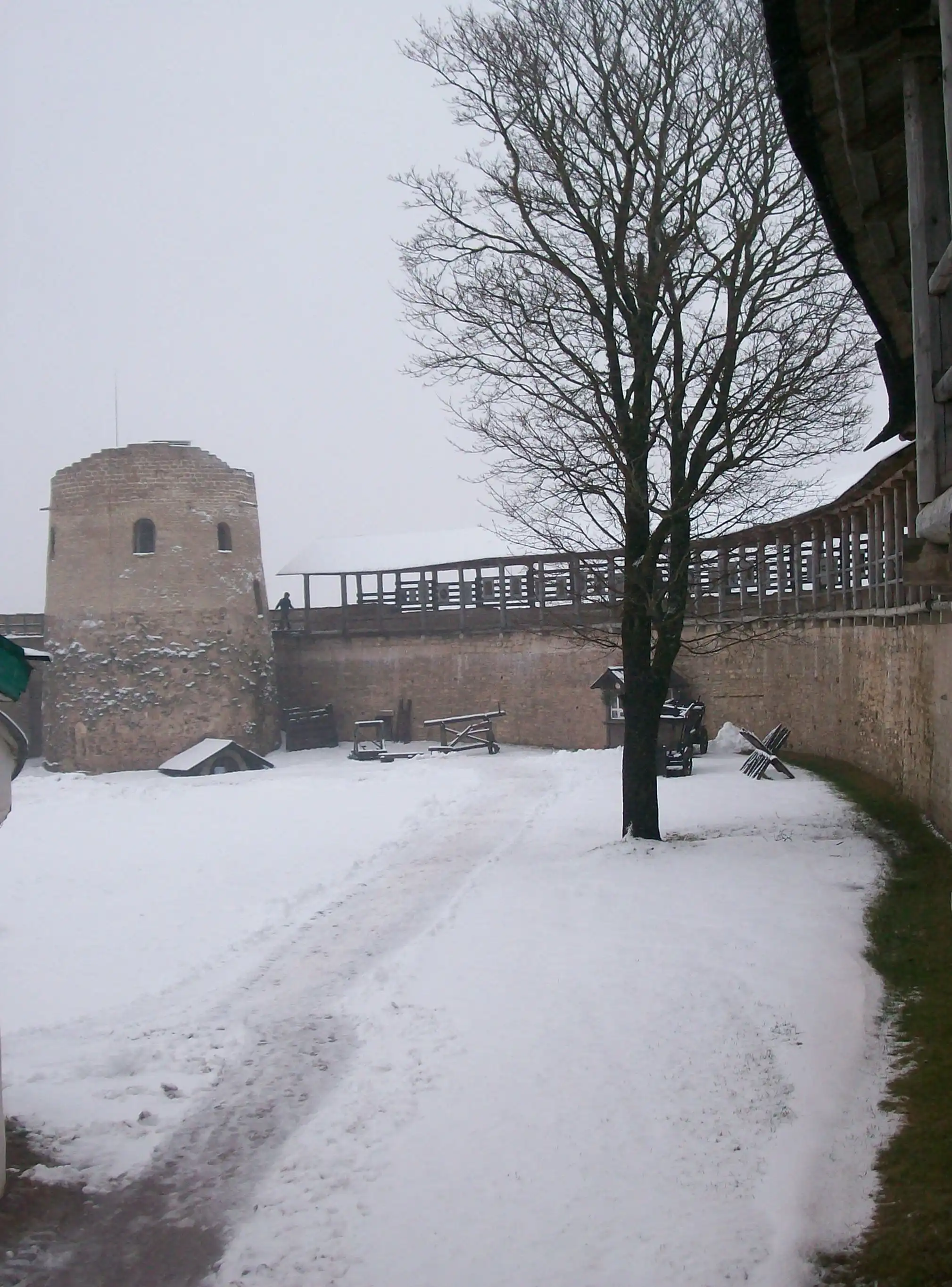 Так выглядит изнутри одна из башен Изборской крепости – Талавская. 15 метров высоты, 5 ярусов боя. Это очень серьёзные оборонительные укрепления. Изборская крепость – первая на пути захватчиков с Запада по дороге на Русь. Изборск – щит Пскова. Согласно псковским летописям, за два столетия с 1030 по 1233 гг. у Изборска произошло 20 сражений с вражескими полчищами. Немецкие рыцари неоднократно пытались захватить Изборскую крепость. Удалось им это лишь однажды, в 1240 г. Тогда в сражении пало около 500 русских ратников, и обескровленный город подпал под Тевтонское владычество, а освобождён был князем Александром Невским. Но то была старая крепость Труворова городища. А вот новую крепость на Жеравьей горе врагам не удавалось взять ни осадой, ни штурмом. До XV века город Изборск выдержал восемь осад и ни разу не был взят. После этого немецкие рыцари прозвали Изборск «Железным городом».