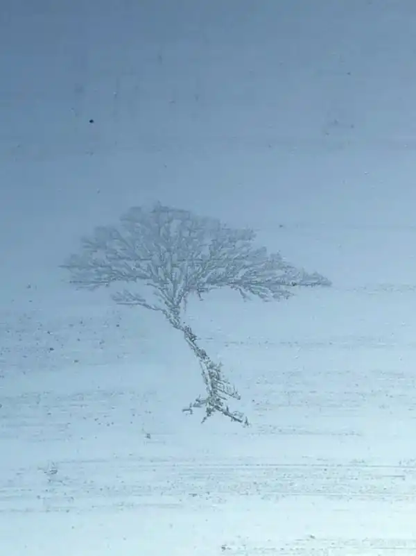 «Сегодня утром обнаружил на лобовом стекле узор в виде маленького дерева»
