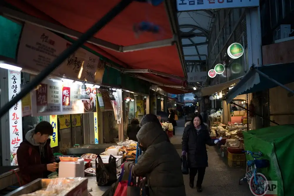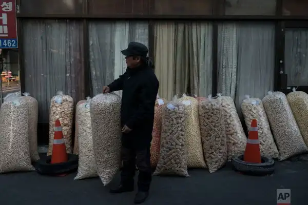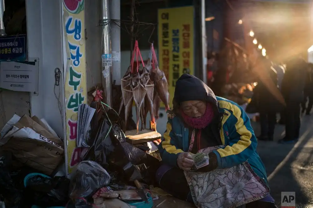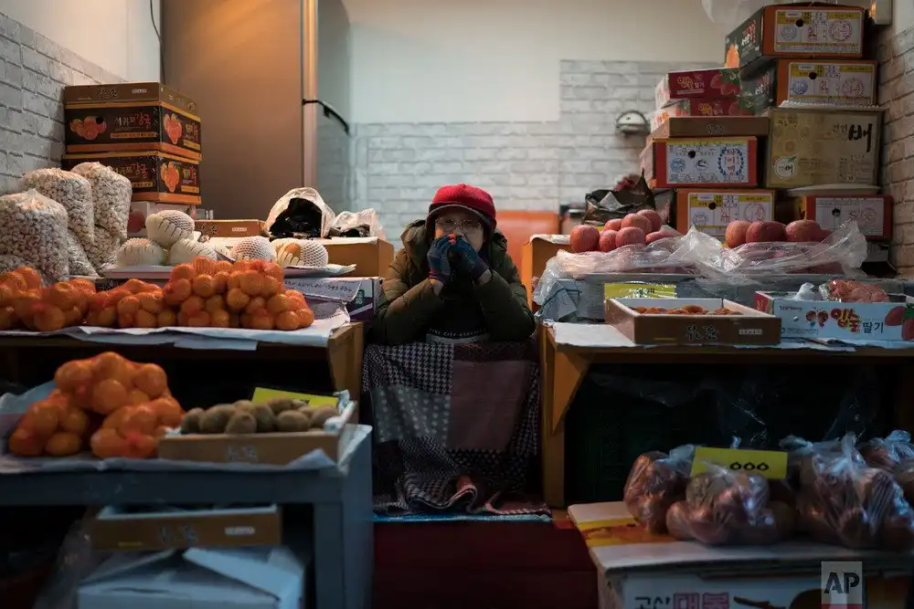 Во время зимней Олимпиады в Южной Корее основные события разворачиваются на спортивных площадках. Но в стране жизнь продолжается, обычные люди работают и живут привычной жизнью. Рынки в стране открыты и продают традиционные товары. Здесь можно купить все: от одежды и обуви, до рыбы и различных морепродуктов. В небольших рыночных палатках торгуют в основном пожилые женщины.