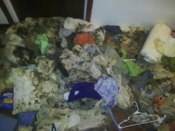 Кстати, удивительно, но в доме было 2 стерильно чистых комнаты - это гараж и комната в которой леди занималась своим любимым хобби - вышиванием под телевизор.