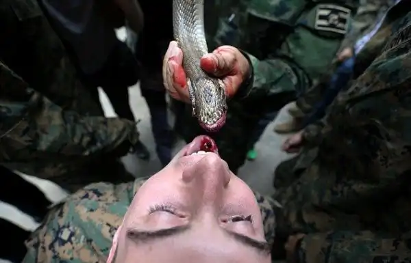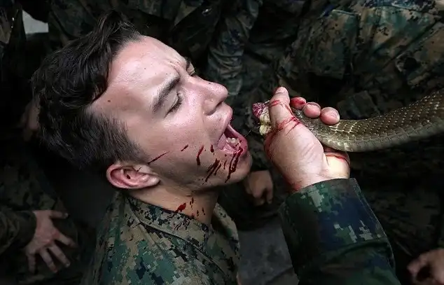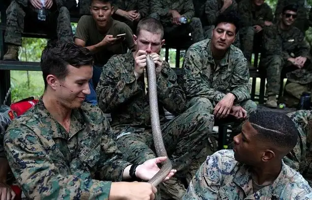 Ежегодно США и Таиланд проводят военные учения Cobra Gold, в этом году в них принимают участие 11075 военнослужащих из 29 стран. На протяжении 10 дней морские пехотинцы не только тренируются, но и учатся выживать в джунглях, и с этой целью питаются гекконами и змеями, пьют кровь убитой кобры, учатся удалять яд скорпионов и тарантулов.