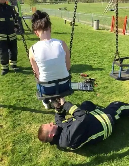 Кто сказал, что с годами люди взрослеют? Нет, с годами люди становятся старше. Доказательство тому – эти отчаянные бедолаги, которым захотелось прогуляться по детским площадкам. Ребята, держитесь от этих мест подальше.