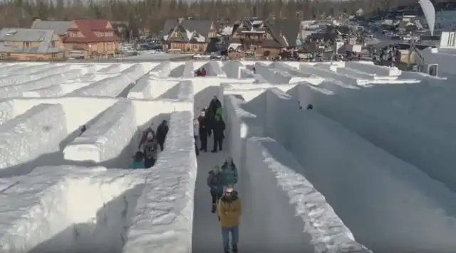 Польскому городку Закопане есть чем привлечь туристов и местных жителей. На территории парка Сноуландия (Snowlandia Zakopane park) сооружен огромный снежный лабиринт, площадь которого занимает 2500 кв. м. Каждый желающий может пройтись между стен, выстроенных из снега. Главное – не затеряться в холодных коридорах.