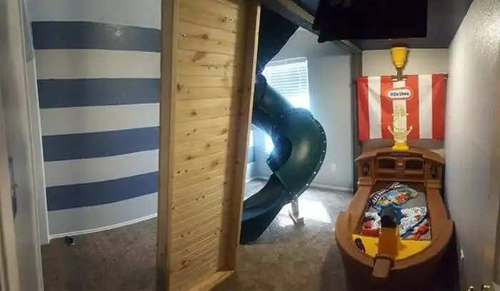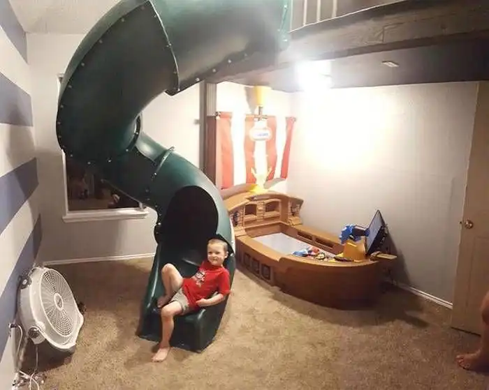 Пользователь сети удивил всех своей находчивостью, показав комнату сына. Сначала мужчина хотел всего лишь поменять ковровое покрытие и перекрасить стены, но потом ему в голову пришла удивительная мысль: воплотить свои детские мечты в реальность. Ко дню рождения его сын получил уже не просто комнату, а целую кучу новых развлечений. Как сознался отец, такой идеей он вдохновился после просмотра других подобных работ на Pinterest.