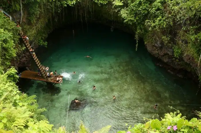 Подземная купальня. Вулканическое озеро То-Суа расположено в деревне Лотофага в Самоа. К природному бассейну придется спускаться на глубину 30 м от поверхности земли © Mark Kolbe