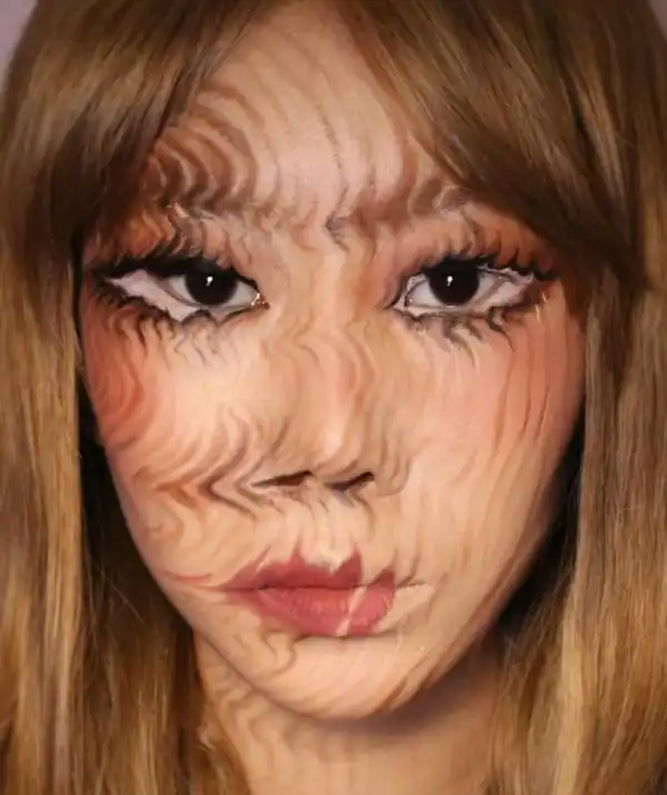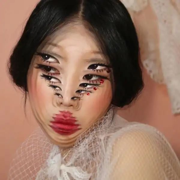 Корейская художница создает завораживающие оптические иллюзии у себя на лице