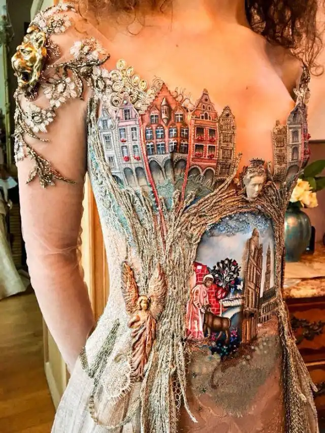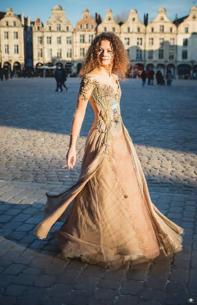 Французский дизайнер Сильви Фасон мастерки делает свою работу. Он умеет отшивать платья из нетрадиционных тканей, создавая настоящие произведения искусства. В результате трудоемкого рабочего процесса на свет появляются одеяния из книжных корешков, расписные наряды или платья с вшитой скрипкой.