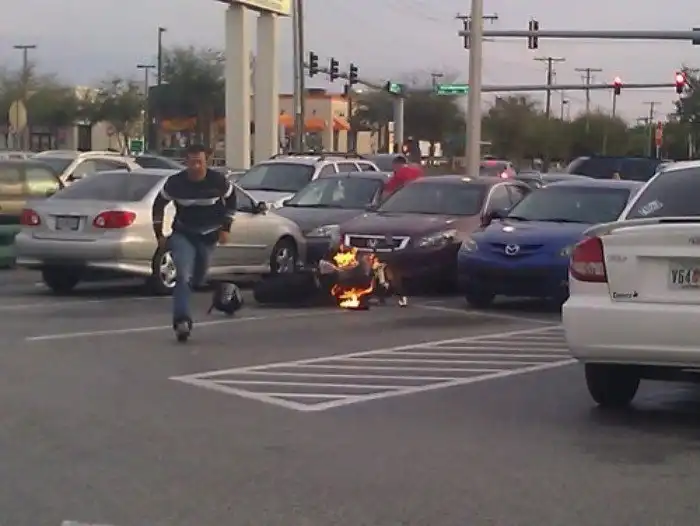 2. Горящий мотоцикл на парковке – к беде у всех водителей