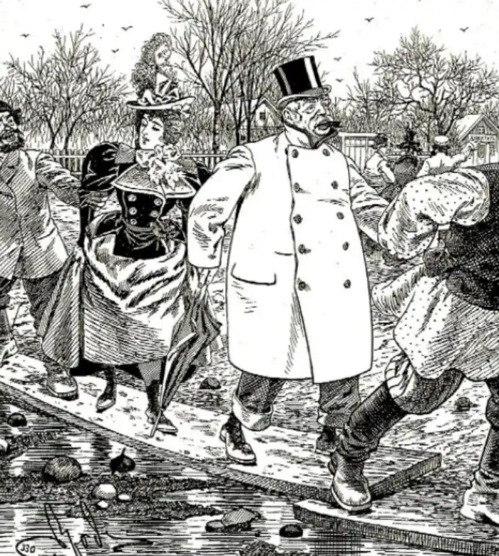 Дачные сюжеты в конце 19 - начале 20 века представлены во многих периодических изданиях того времени. Именно усадебная жизнь была поводом для карикатур. Городские дамы с наслаждением вздыхали, когда речь шла о свежем воздухе.