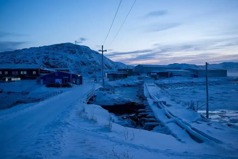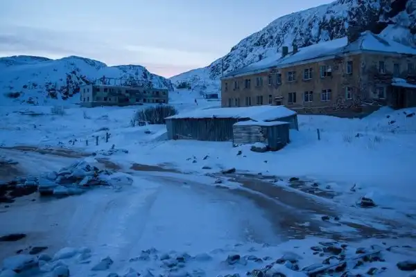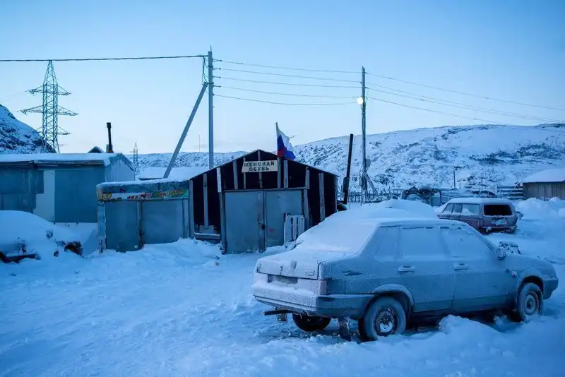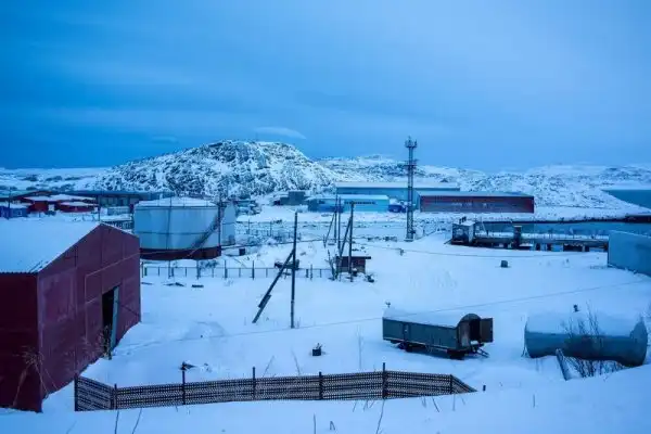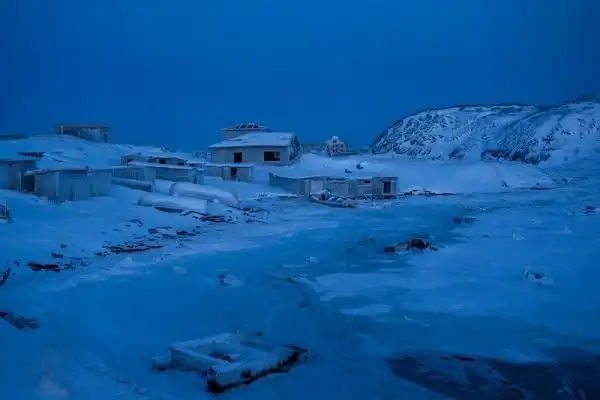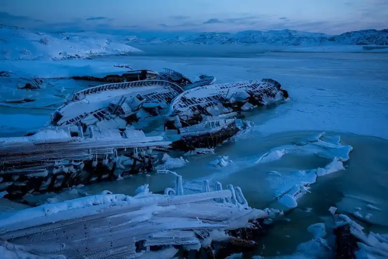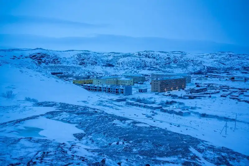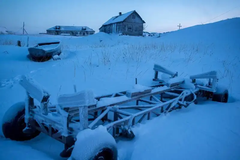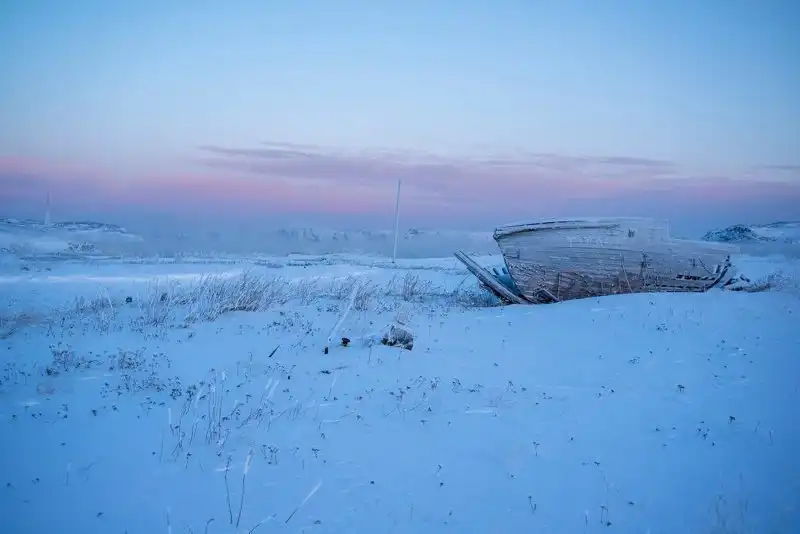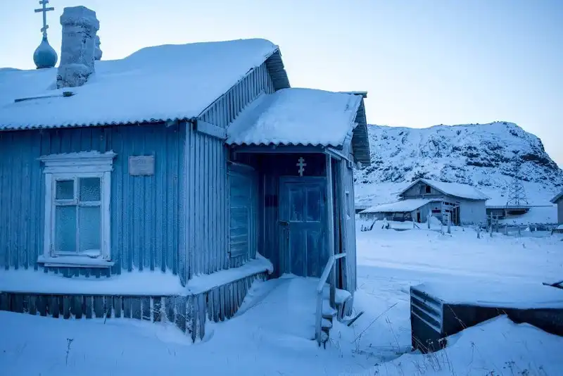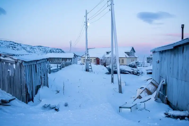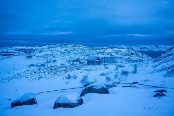 Бесконечная зимняя синь села Териберка на берегу Баренцева моря